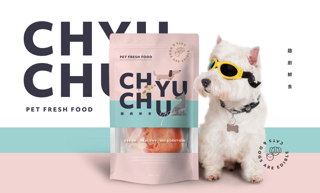 此次的包裝設計以插畫方式呈現,將鮮食與寵物的互動以最直觀的方式呈現出來。運用插畫輔助傳達出趣廚寵物企業主所期待的,讓寵物和人一樣都能安心享用鮮食,別於一般市面品牌著重於食品介紹而從毛小孩角度出發,將享受鮮食的好心情放大。